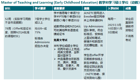 新西兰高等教育学院New Zealand Tertiary College,简称NZTC,拥有41年历史新西兰规模最大的幼教老师培训院校,现隶属于UP教育集团。毕业生完成课程即可获得新西兰注册教师资格,在本地就业与技术移民申请中具有显著优势。采用在线+远程混合教学模式,支持全境学习。课程每周一开学,开学时间灵活。