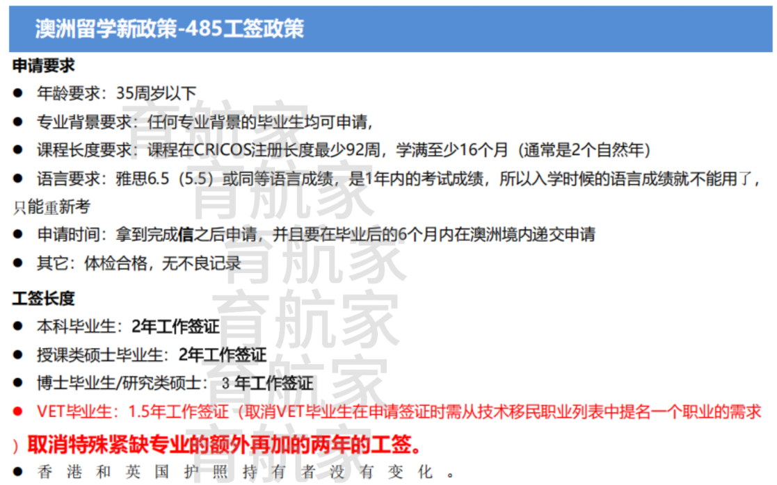 澳大利亚是著名的移民国家之一,想移民的学生都会关心毕业工签的长度。育航家留学老师总结了一下澳大利亚毕业生工签的一些核心信息。