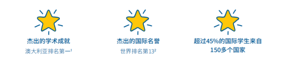 墨尔本大学在澳大利亚排名第一。身为世界上最优秀的大学之一,墨尔本大学的学生能够在最高水平的环境下成长。他们生活在世界上最宜居城市的市中心里,和来自澳大利亚和超过140多个国家的同学们一起学习,并且建立终身的友谊。 这就是为什么一些最有上进心的学生会选择报读墨尔本大学。